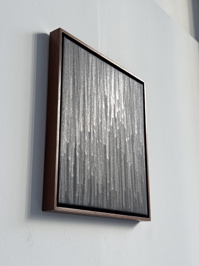 Geste vertical, 2022, graphite, acrylique, toile, 28 x 25 cm.