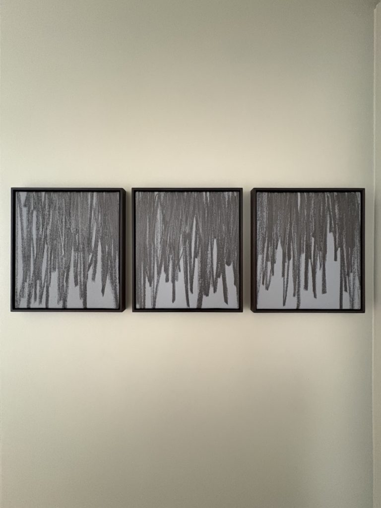 3 gestes superposés sur fond gris, 2022, graphite, acrylique, toile, 28x25cm.