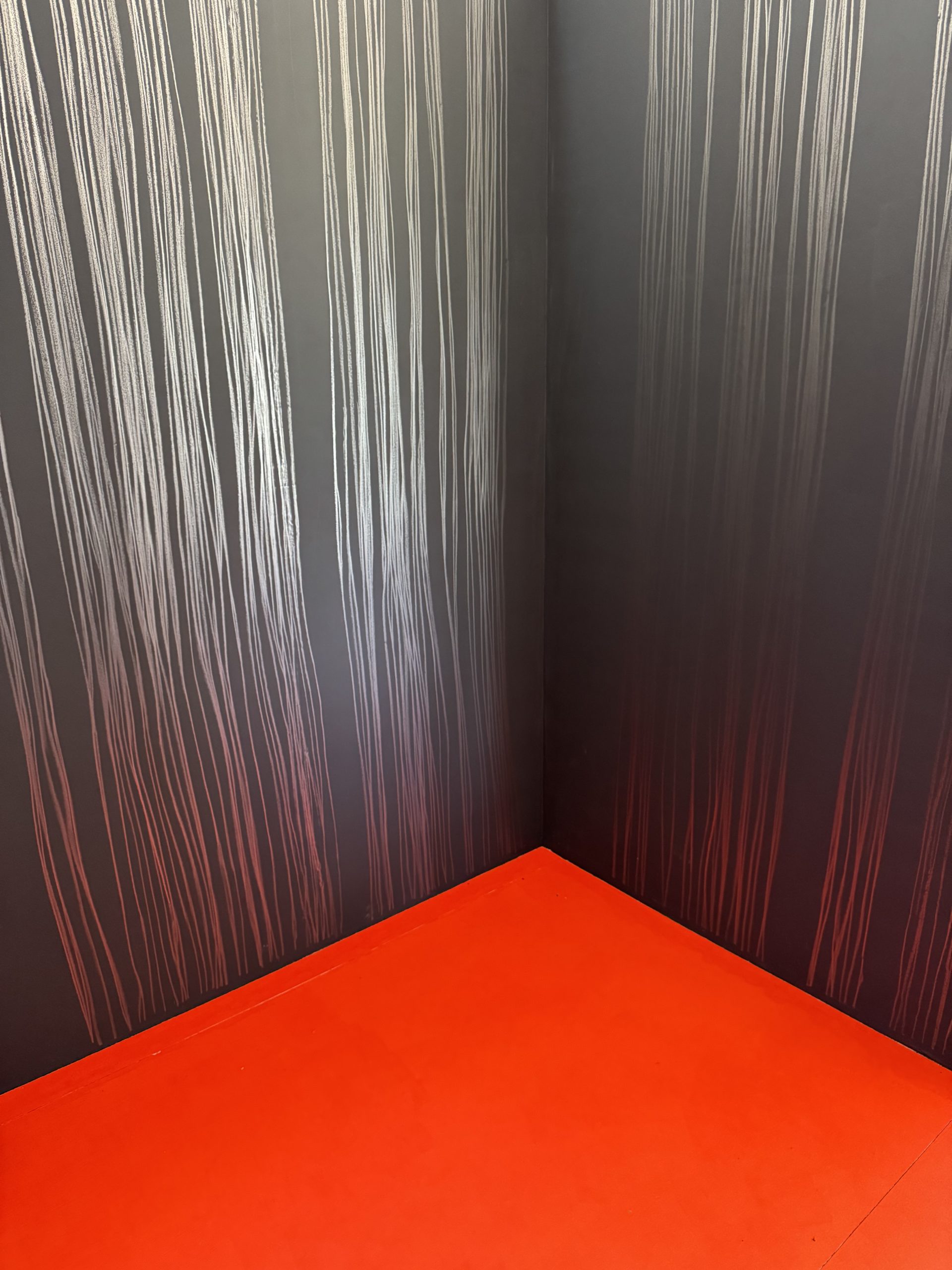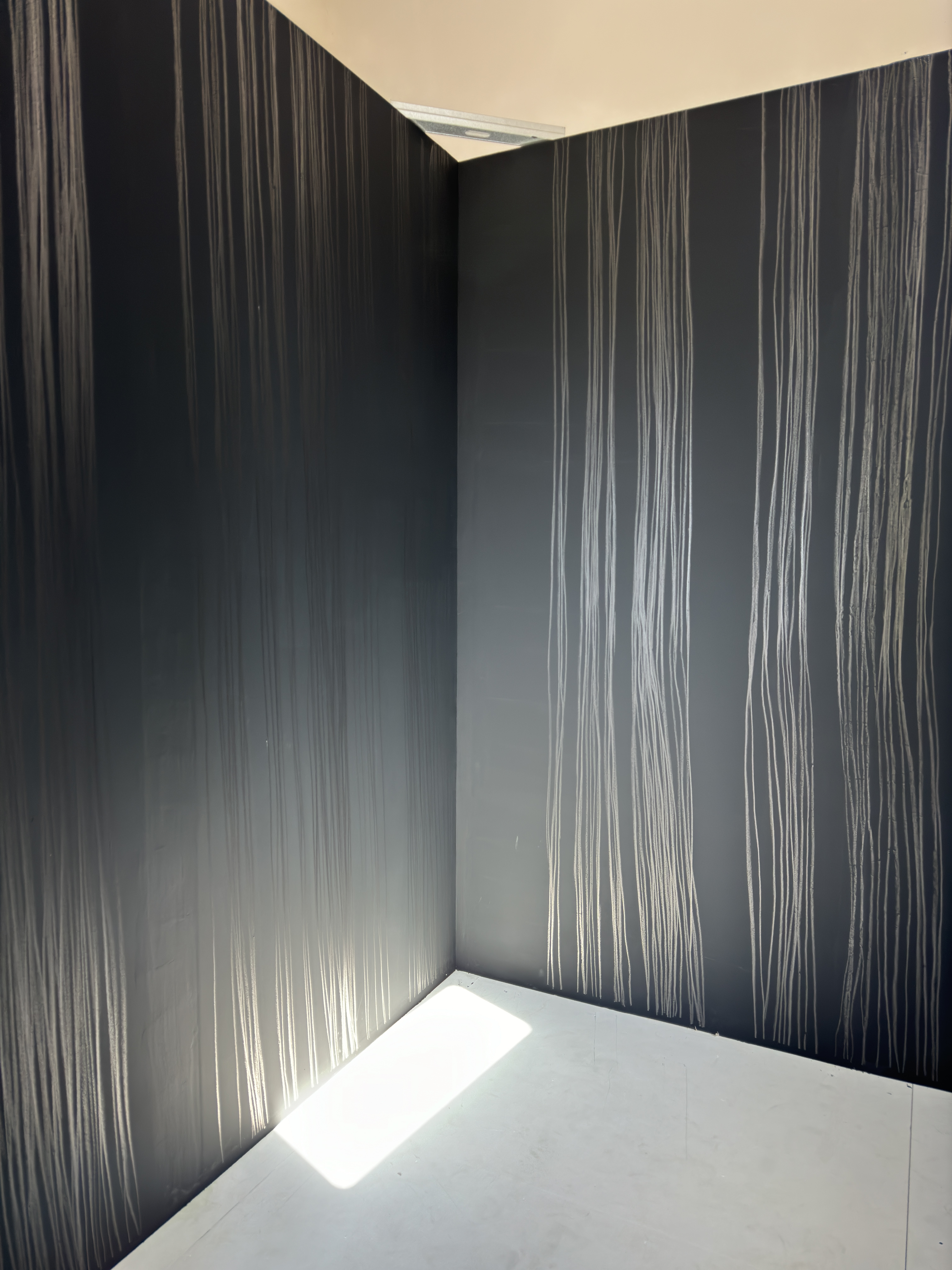Module, session 2024-2025. Placo, plateau roulant en bois et métal, acrylique, graphite. Quatre murs, un sol et une entrée-sortie. Scupture-dessin. Espace d’expérimentation, Vaucluse.