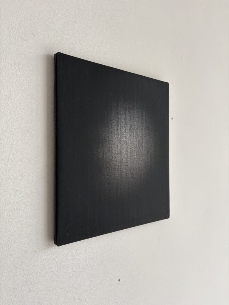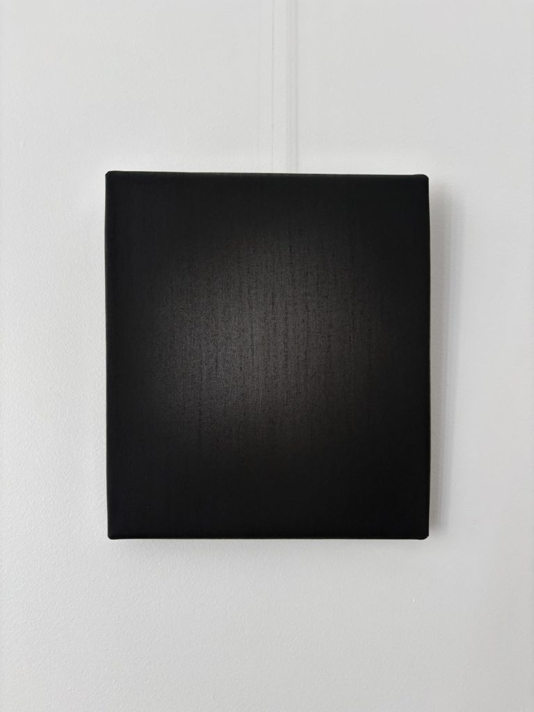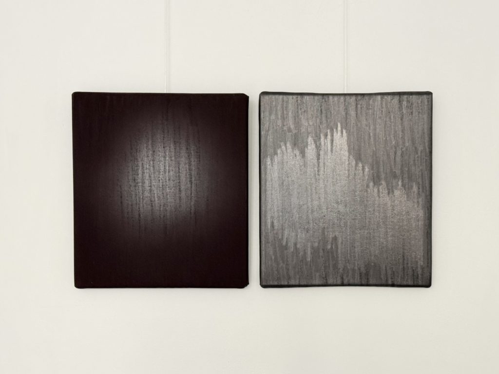 Persistances, 2025, gris foncé, graphite et acrylique sur toile, 28 x 25 cm.